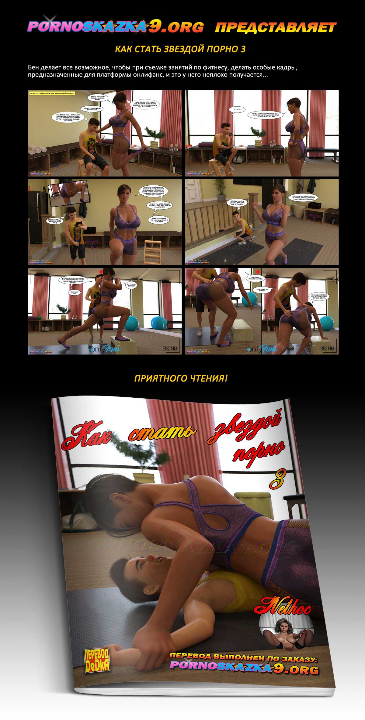 Порно комикс «Как стать звездой порно. Часть 3.» Бен делает все возможное, чтобы при съемке занятий по фитнесу, делать особые кадры, предназначенные для платформы онлифанс, и это у него неплохо получается…